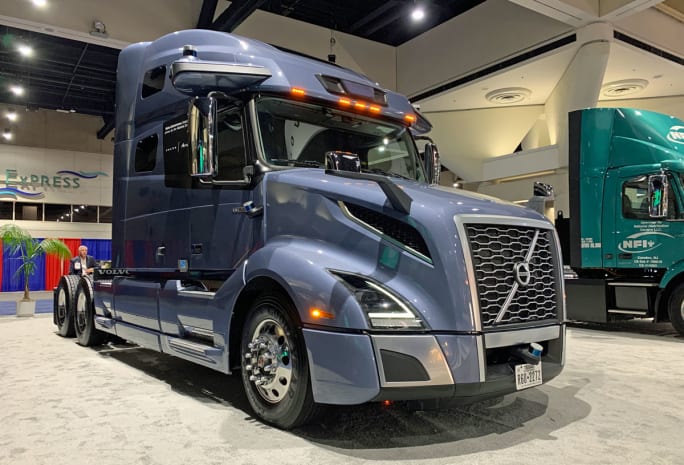 Volvo displayed a VNL 760 with Aurora autonomous-truck technology at the American Trucking Associations Management Conference & Exhibition in San Diego Oct. 23-25 but did not have many details to share, emphasizing that the company is not in a race.
