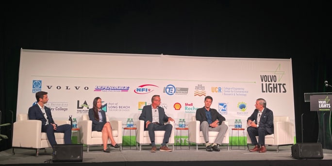 VTNA President Peter Voorhoeve spoke to representatives from all the Volvo LIGHTS partners during his opening remarks at a day-long event detailing the project’s successes, which included visits to TEC Equipment, Volvo Trucks' largest West Coast dealership, and NFI’s Cinco distribution center. NFI is currently running electric trucks in drayage operations out of the Port of Long Beach. Other events included round-table discussions with Volvo LIGHTS partners and a one-on-one interview between Voorhoeve and industry journalists attending the event.