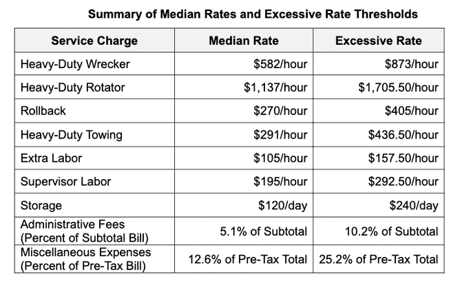 ATRI analyzed towing invoices from motor carriers to determine typical and excessive towing rates.