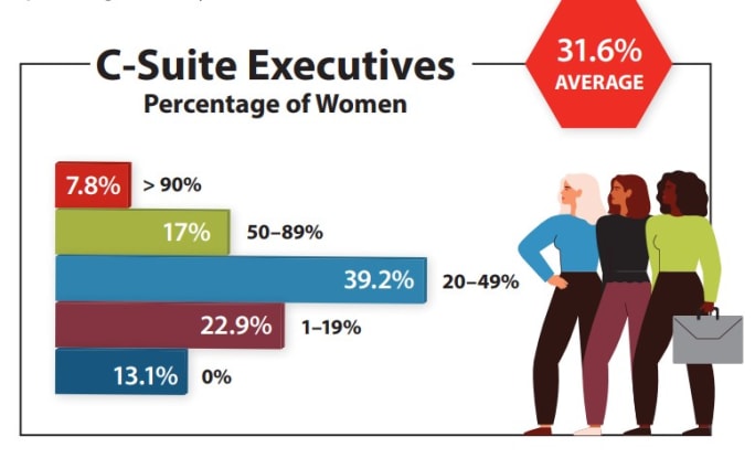 At nearly 8% of the companies, more than 90% of their C-suite executives are women.