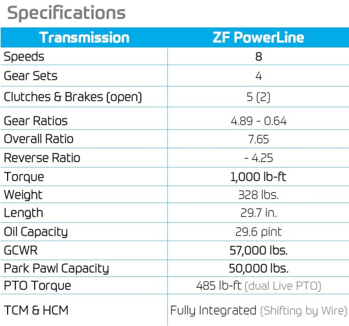 The PowerLine 8 transmission from ZF is new to North America but more than 15 million copies are currently running all over Europe and Asia.