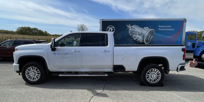 This 2021 Chevrolet Silverado has been converted into a test vehicle demonstrating ZF’s new eBeam electric drive axle, intended for medium-duty applications.