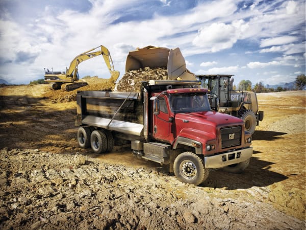 The new CT681 (shown) with forward-set steer axle joins the Cat Truck series which began in 2011 with the axle-back CT660. CT681’s plain nose is preferred by fleet operators of dump and concrete mixer trucks, Cat said in introducing the model early this year and displaying it in October (see Test Drive on page 36). In 2015, there will be a CT680 tractor, also with a forward-set steer axle but fancier styling to suit premium-minded buyers. Cat Trucks are aimed at vocational duties and built by Navistar with the International PayStar 5000 as a base; they use Navistar’s 12.4-liter N13 diesel which Cat calls the CT13. Cat’s own CX31 full-automatic is the most popular transmission, followed&