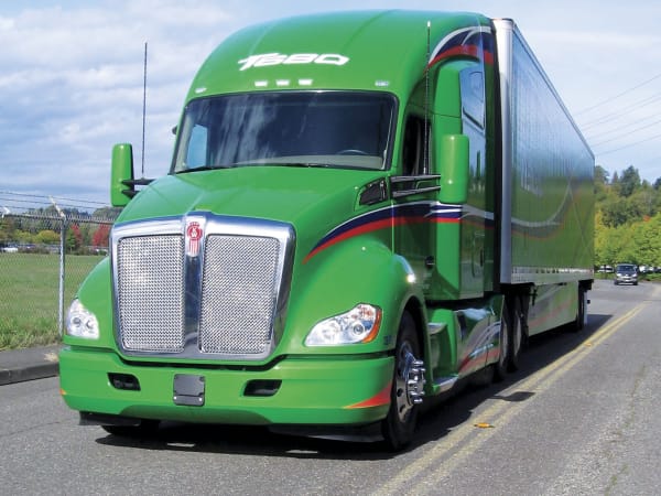 T680 Advantage (shown) has been well received by customers, KW says, because even with lower fuel prices, they still want to save money. Package includes enhanced aero improvers, an MX-13/Eaton Advantage AMT powertrain, and a 6x2 or 6x4 tandem; it performs best when mated to an aerodynamically sound trailer and is driven properly. The relatively new T680 can also be spec’d with a variety of equipment to suit many on-highway applications. Also in the Class 8 on-road lineup are the wide-cab T700, narrow-cab T660 and traditionally styled W900, and the medium-heavy T440. T880 is taking over vocational duties from the long-running T800. Extra-heavy-duty C500 and K500 are built primarily for off-road servic
