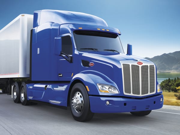 Model 579 tractor with EPIQ package (shown) has all available aerodynamic fairings and “closeouts” (gap covers), and other fuel-saving features to improve fuel efficiency by up to 14% over a base 579, Peterbilt says. An APEX package with an optimized drivetrain is optional for all heavy-duty models and can improve fuel efficiency by up to 4%. The 579 comes in two BBCs, with separate sleepers and with Paccar MX-13 or Cummins ISX12 or -15 diesels. The long-hood 587 has a wider cab and integrated sleeper, and MX-13 or ISX15 power. Other on-highway models are the narrow-cab 386, with MX or Cummins heavy diesels; 384, with Paccar PX-9 and MX-13, Cummins ISL9 and ISX12 diesels, and Cummins Westport I