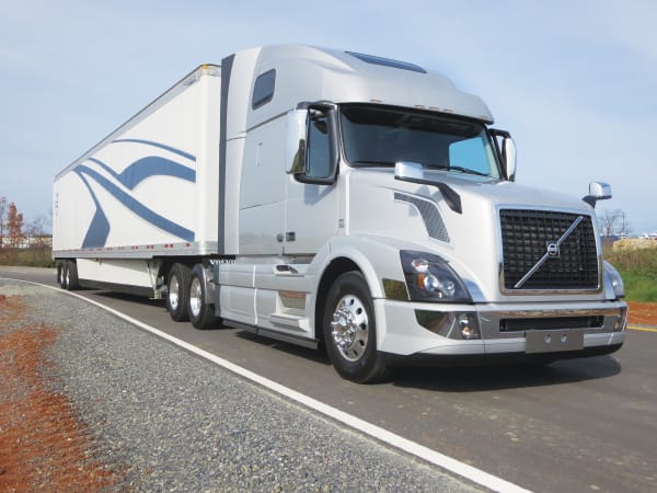 T he 2016-model VN series (shown), scheduled for production in early 2015, will have enhanced aerodynamics, notably with sculpted bumper and side skirts to move air to the sides and away from wheels. The VNL670 sleeper also has a newly contoured roof to deposit air on the van trailer’s roof and keep it flowing rearward. I-Shift AMT’s oil cooler is redesigned to minimize pumping losses and has quick-disconnect lines for easy maintenance. Adaptive Gearing, an 11th/12th-gear adaptation of downspeeding introduced with the I-Shift XE package, will be available for bulk haulers. On-highway series includes VNL and VNM with long and medium-length hoods with several sleeper options. VNX heavy-haul tractor w