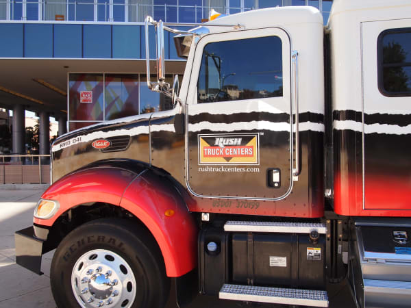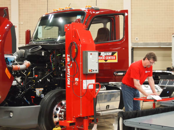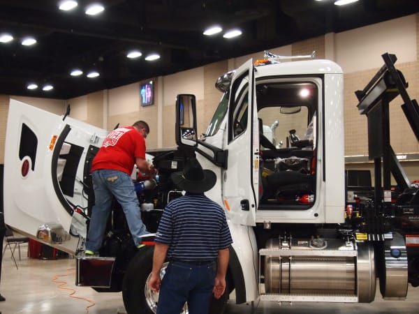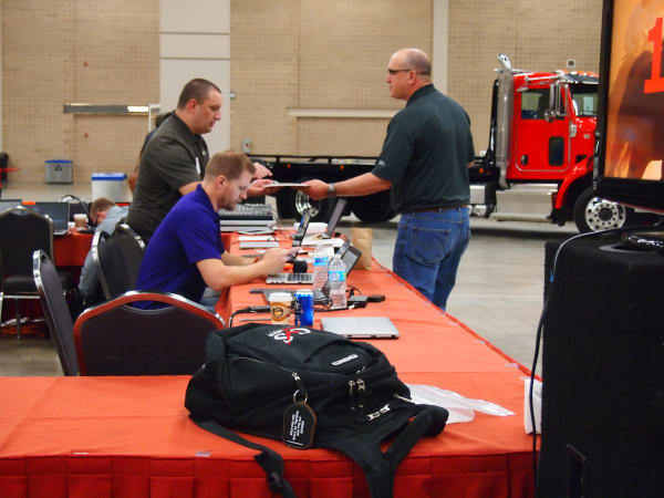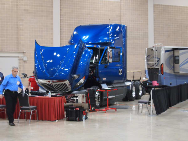 Peterbilt brought a mobile exhibit with videos, engines and mock cabins to showcase the history of the brand.
