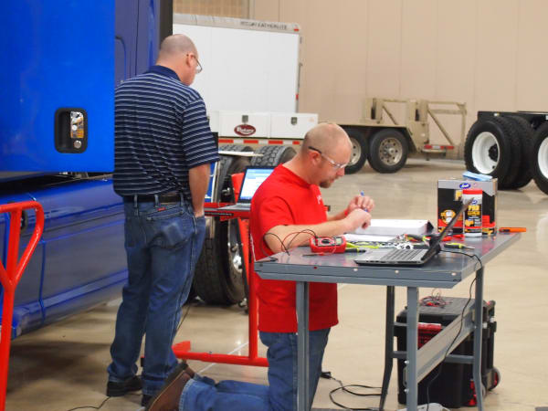 Technians had to climb in and out of trucks to troubleshoot problems while they checked their work.