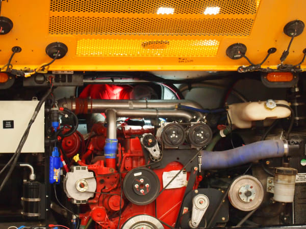 For the bus competition, technicians had the added difficulty of having to run in and out of the long trucks to reach different parts of the engine.