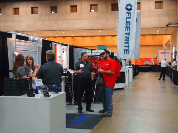 The trucks were separated by company and division and surrounded by tools and equipment for the technicians.