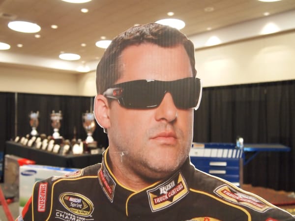 NASCAR driver Tony Stewart spoke at the awards dinner on the last night of the event but his likeness made an appearance on the show floor.