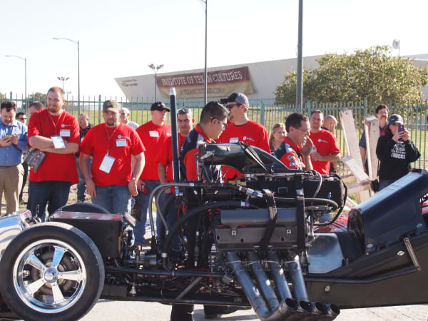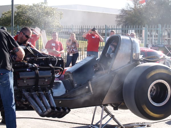NHRA Funny Car driver Tony Pedregon brought his ride out to the convention center parking lot to give everone the experience of a funny car engine.