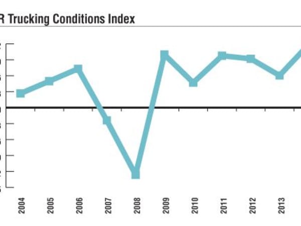 The TCI illustrates a change in market dynamics in that the market is more stable and positive versus the very large cyclical swings seen in prior decades. It is a compilation of factors affecting trucking companies. Readings above zero indicate a generally positive environment for truckers. Readings above 10 signal that volumes, prices, and margins are likely to be in a solidly favorable range.