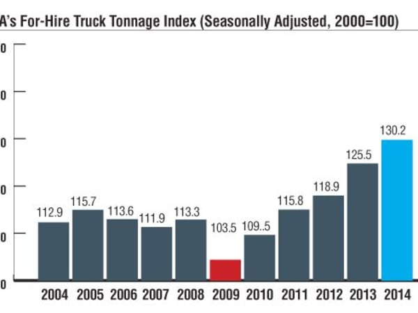 ATA’s yearly tonnage numbers showed that tonnage was up 3.5% in 2014 over 2013. On a monthly basis, in January 2015, the index hit an all-time high of 135.7, but by June 2015 had dropped to 131.1.