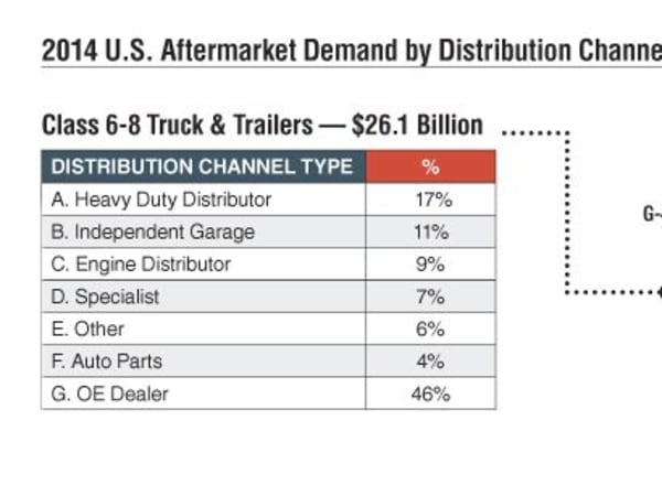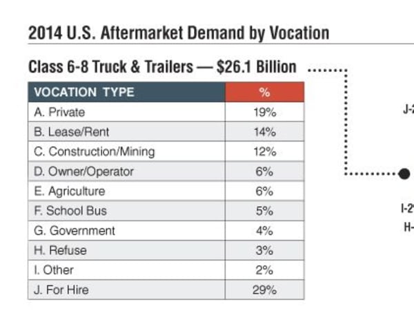 For-hire and private fleets account for nearly half of aftermarket parts demand of Class 6-8 trucks and trailers.