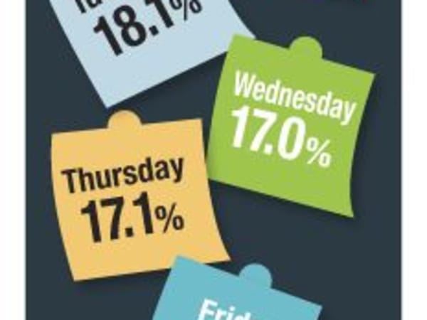 ear after year, Tuesday remains the most popular day of the week for an accident to occur at 18.1%, followed by Mondays at 17.5%.