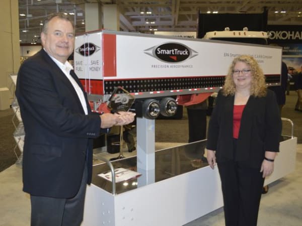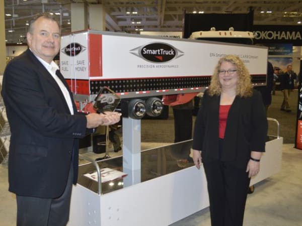Stephen S. Ingham Jr., CEO of SmartTruck, accepts the Top 20 Award from Editor in Chief Deborah Lockridge for the TopKit Aero System.