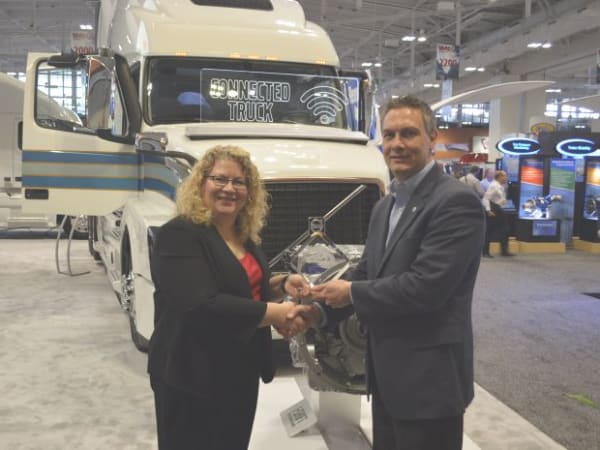 Volvo's I-See earned the Top 20 award. HDT Editor in Chief presents the award to Wade Long, Volvo Trucks North America’s director of product marketing.