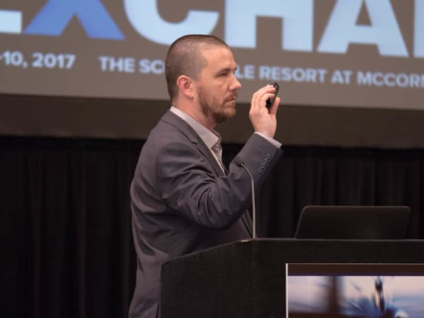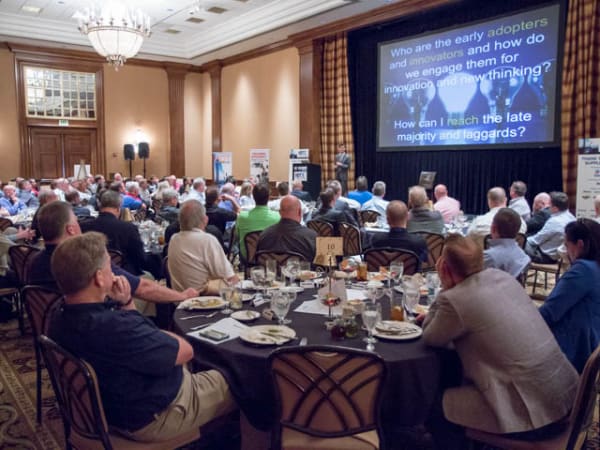 Motivational business speaker Tim Richardson challenges attendees to encourage people at their organizations to really think.