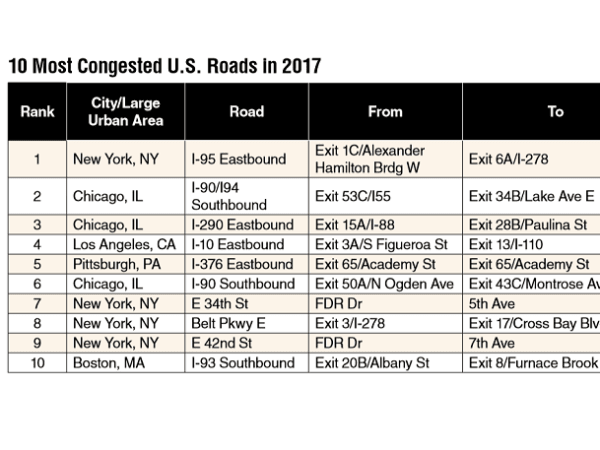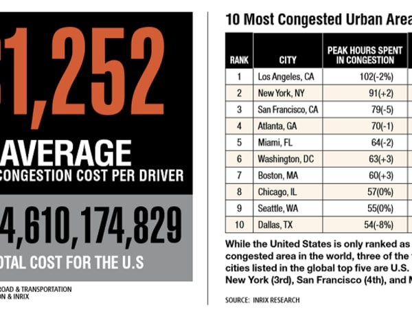 While the U.S. is only ranked as the fourth most traffic congested area in the world, three of the top five most congested cities listed in the global top five are U.S. cities.