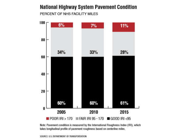 Note: Pavement condition is measured by the International Roughness Index (IRI), which takes longitudinal profile of pavement roughness based on centerline miles.