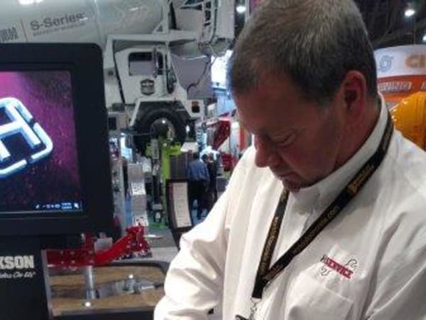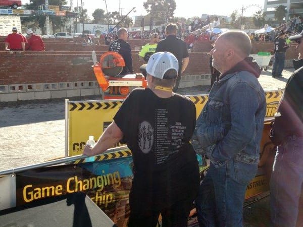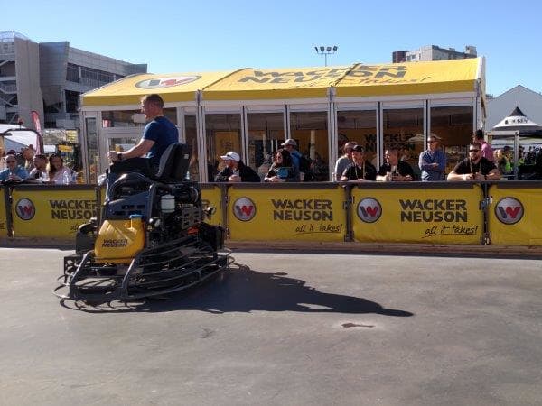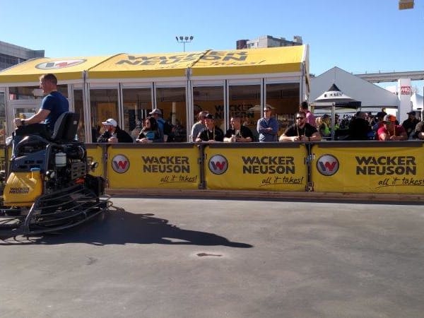Attendees watched colleagues compete in operating power trowels, which can quickly finish large pads of fresh-poured concrete.