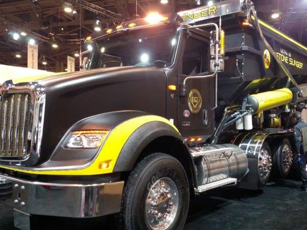 Stone Slinger body sits on a five-axle International HX. Matte-finish paint is Linex Ultra, which should resist all kinds of abuse including hammer blows, says the manager of the Indianapolis fleet that commissioned the special paint job.