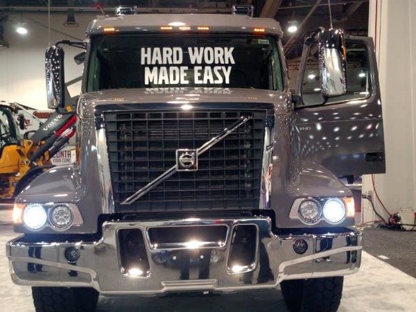 Volvo has improved its vocational VHD with, among other things, LED headlamps that are brighter and last longer than previous lights. This is a dump truck chassis.