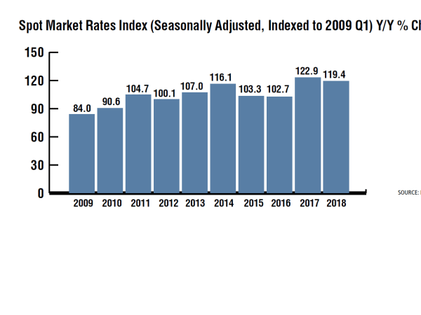 After extraordinary growth in the first half of 2018, spot rates finally began to stabilize in Q4 in comparison to the beginning of the rate surge in late 2017.