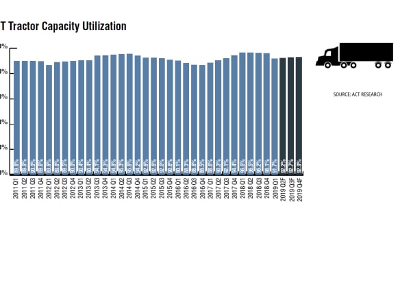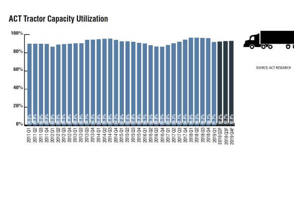 The combination of strong fleet growth, weak freight growth, and an easing of driver supply constraints took what was an historically tight capacity market in Q2’18 (96.5%), and turned it into a loose capacity market by Q2’19 (92.2%). As ACT measures capacity, 91% is considered neutral.