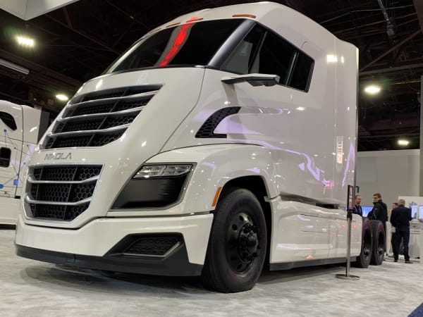 Nikola hydrogen electric truck on display at Bosch booth.