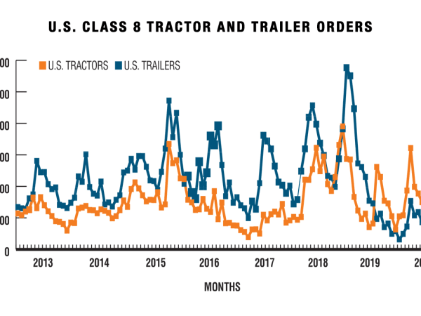 While both tractor and trailer sales saw a surge in October of 2019, those numbers quickly started dropping, with a COVID-19-related low in April 2020 of 1,680 tractors and 209 trailers.