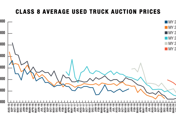 Looking at the average price of the benchmark sleeper tractor sold through the two largest nationwide no-reserve auction companies, Class 8 auction volume increased in June, reflecting high levels of off-lease supply and mild to moderate increase in demand. Pricing was fairly stable for late-model trucks, and low-mileage trucks look to be increasing in value. Conditions in the second half will depend on the degree of economic reopening.