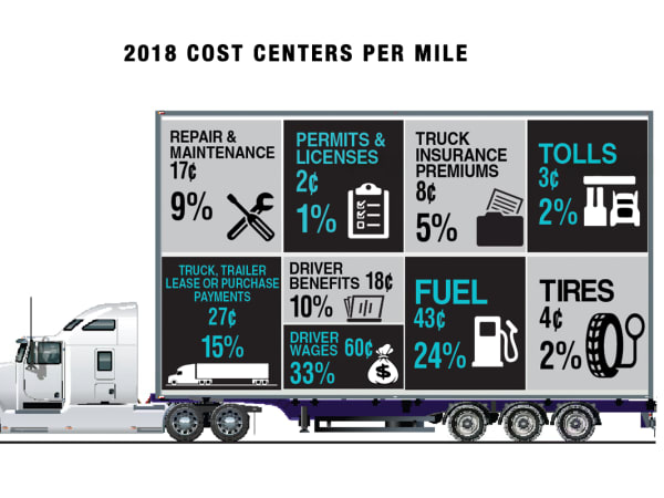 While most cost center percentages stayed relatively close to the previous year, according to the American Transportation Research Institute, the average marginal costs per mile increased from $1.69 to $1.82 in 2018, the most recent numbers available.