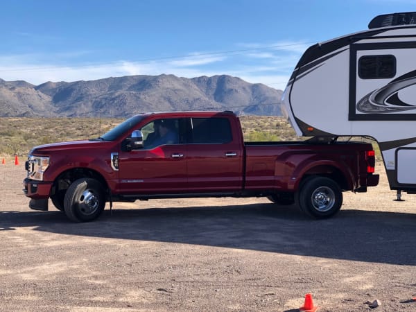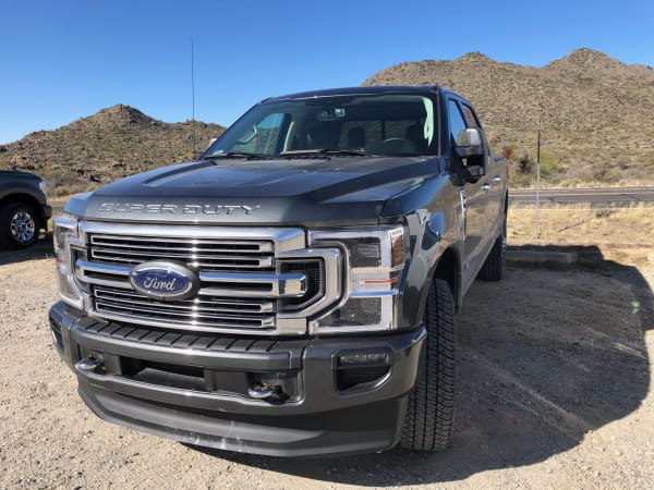 An F-250 Super Duty patiently awaits another run up Granite Mountain (seen in the background).