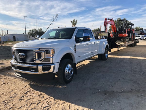 This big-dog Ford F-450 with a Power Stroke diesel was more than able to lug 30,000 lbs. of Kubota equipment up Granite Mountain and back down again.