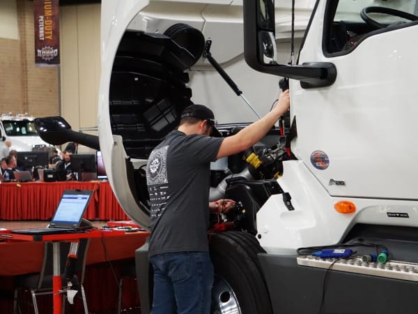 Technicians compete in medium-duty and heavy-duty truck devisions.