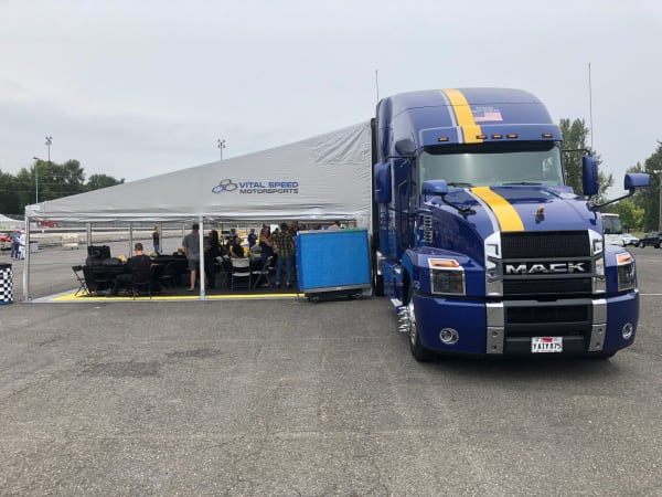 A Vital Speed Mack Anthem doubles as a pit shop for the race team at the Portland International Raceway.