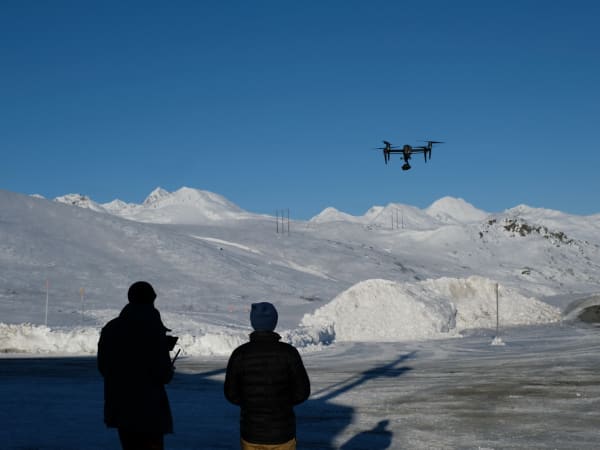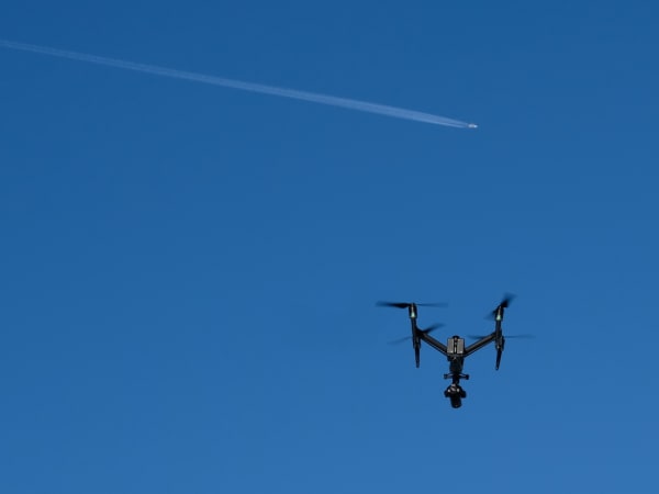 Flying the camera drone is a four-handed operation. One operator keeps the drone where it's supposed to be while the other pans, tilts and focuses the on-board camera.