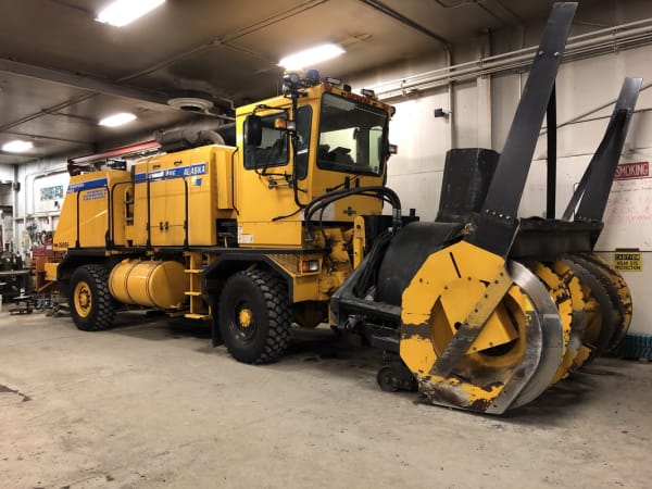 The snow-blowers are used to clear snow banks dig into areas where the plows can't go. This machine has a 600-hp engine to drive just the auger and impeller. They are the most expensive pieces of equipment to operate. Trucks are the most efficient.