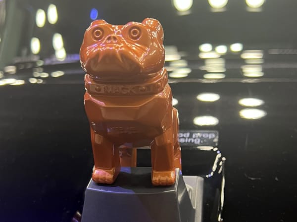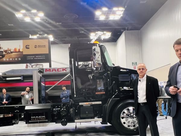 Mack’s “copper” Bulldog hood ornament signifies the truck runs on electric power.