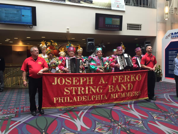 A barbership quarter and this Mummers band opened the exhibit hall with flair. Photo: Deborah Lockridge