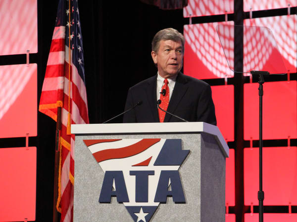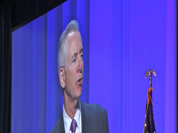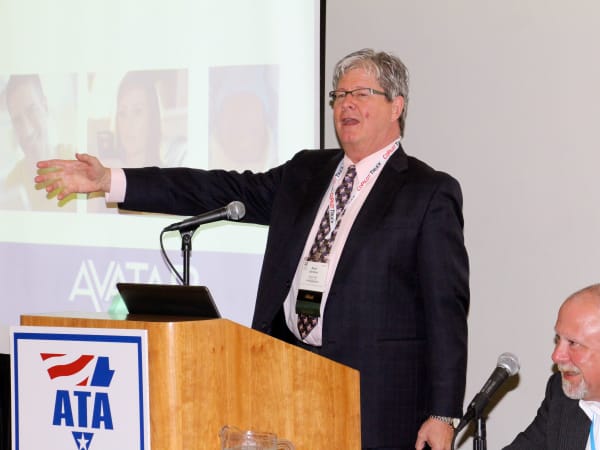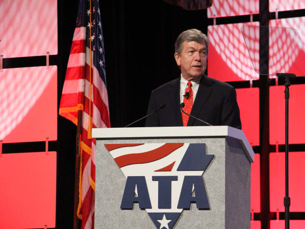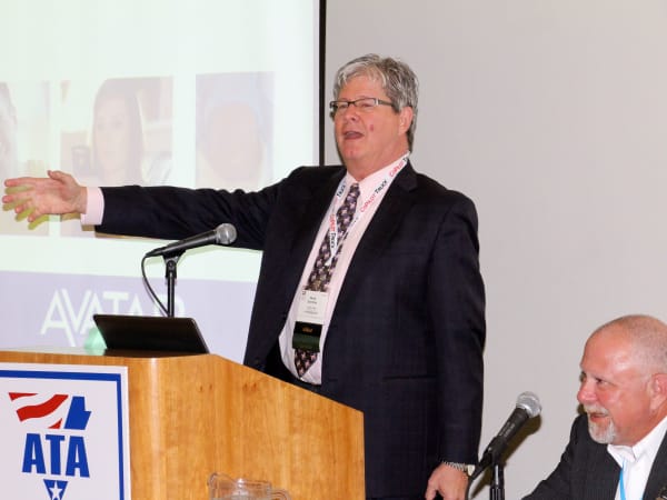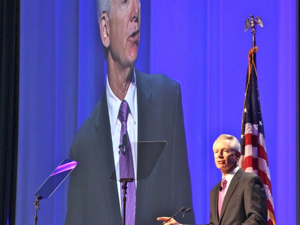 ATA Bill Graves delivering his state of the trucking industry address.