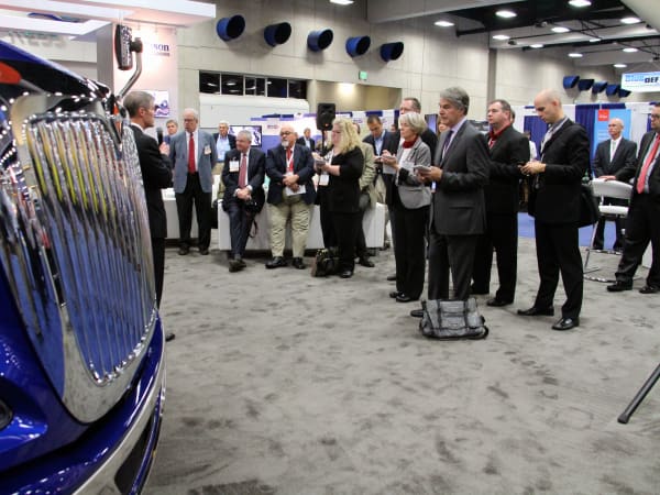 The trucking press attending a Navistar press conference.