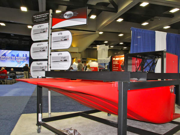 Smart Truck shows off its aerodynamic device that works under the trailer.
