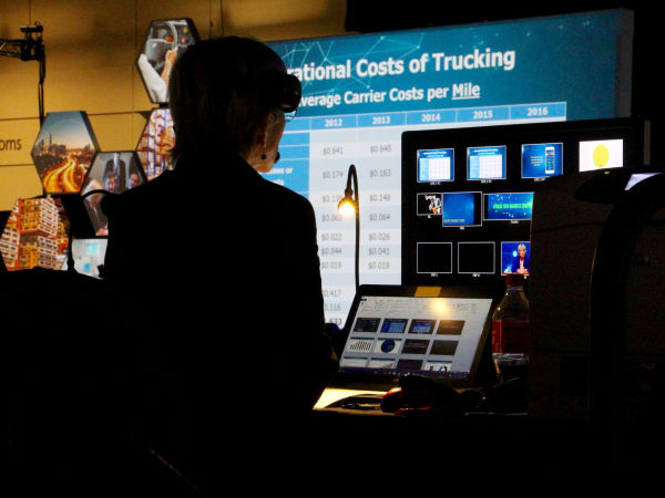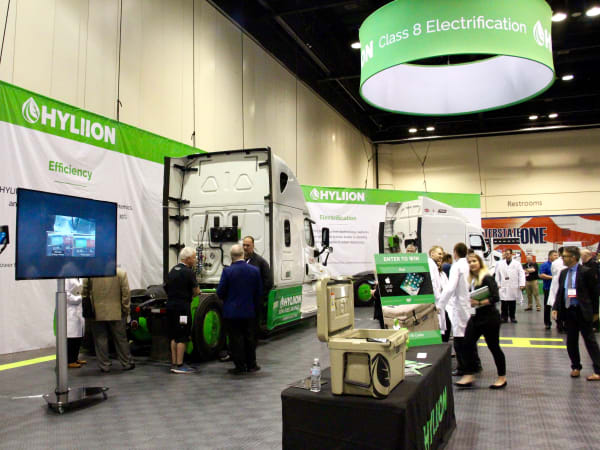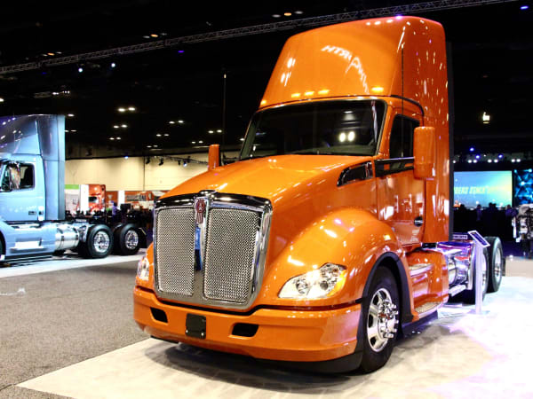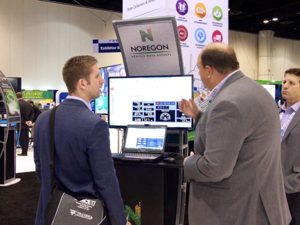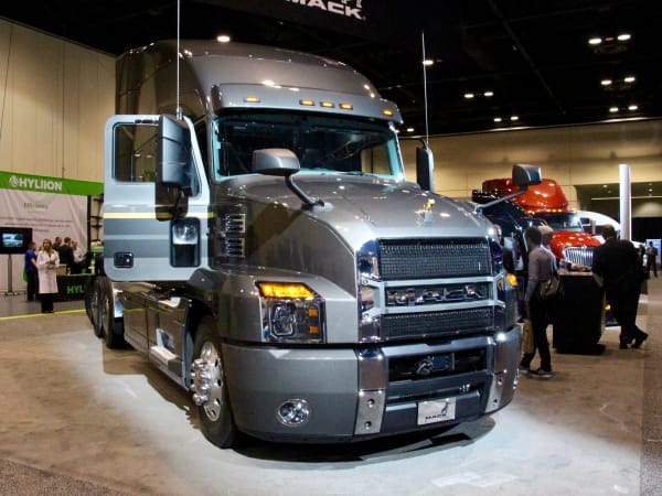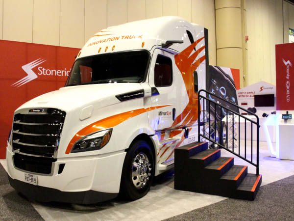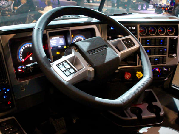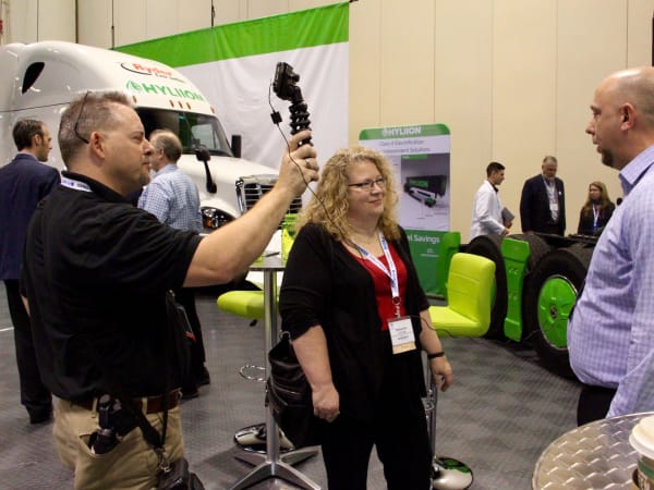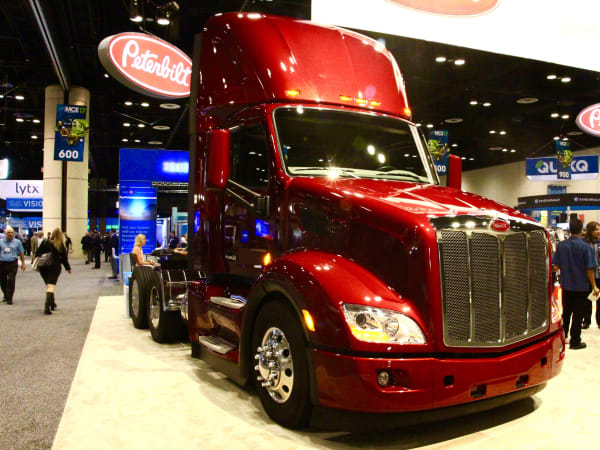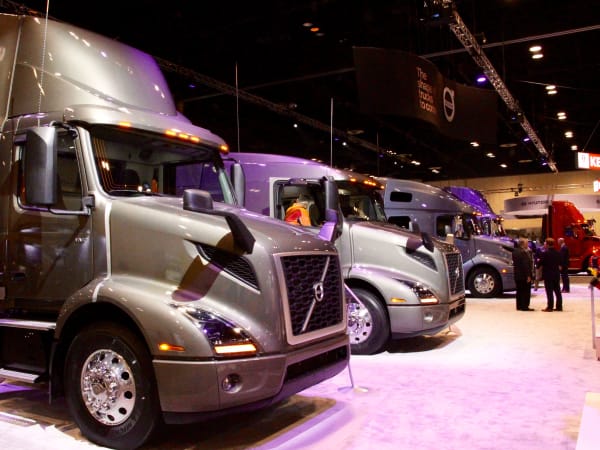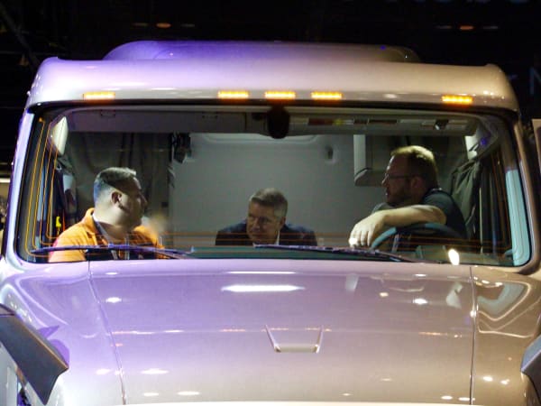 Question: Where do you hold a business meeting at a trucking show? Answer: In a truck, of course. Photo: Evan Lockridge