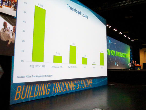 Werner's Derek Leathers introduces the Sunday General Session, "How Do Your Numbers Stack Up?" Photo: Evan Lockridge