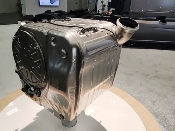 Navistar displayed its S13 Dual Stage Aftertreament, which weighs 267 pounds.