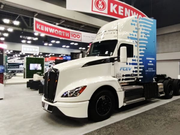 The Kenworth T680 FCEV day cab is powered by a Toyota Gen 2 Dual Fuel Cell Module.