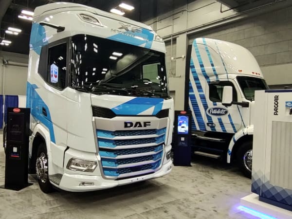 Peterbilt displayed a DAF XF powered by a Paccar MX-13 hydrogen ICE engine. The truck is a hydrogen-fueled demonstrator model.